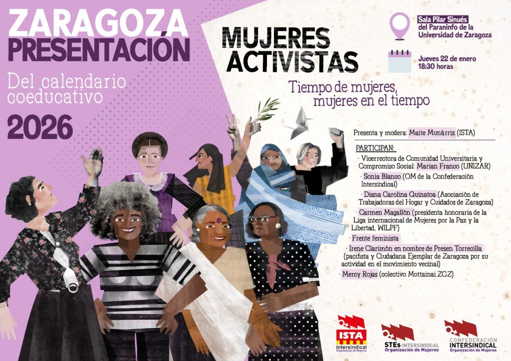 El próximo jueves día 22 de enero, a las 18:30h tendrá lugar la presentación del calendario coeducativo feminista 2026, que este año está dedicado a las Mujeres Activistas.